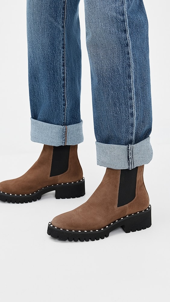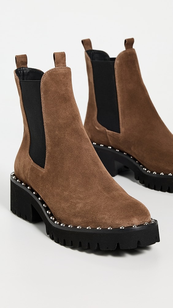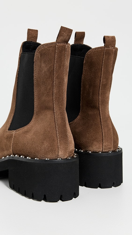 Upper: Cowhide Elastic gores Grosgrain pull tabs Lining: Leather Chunky heel No closure, pull-on design Round toe Rubber sole Imported, China This item cannot be gift-boxed Style #LOEFF42344
