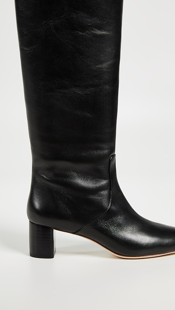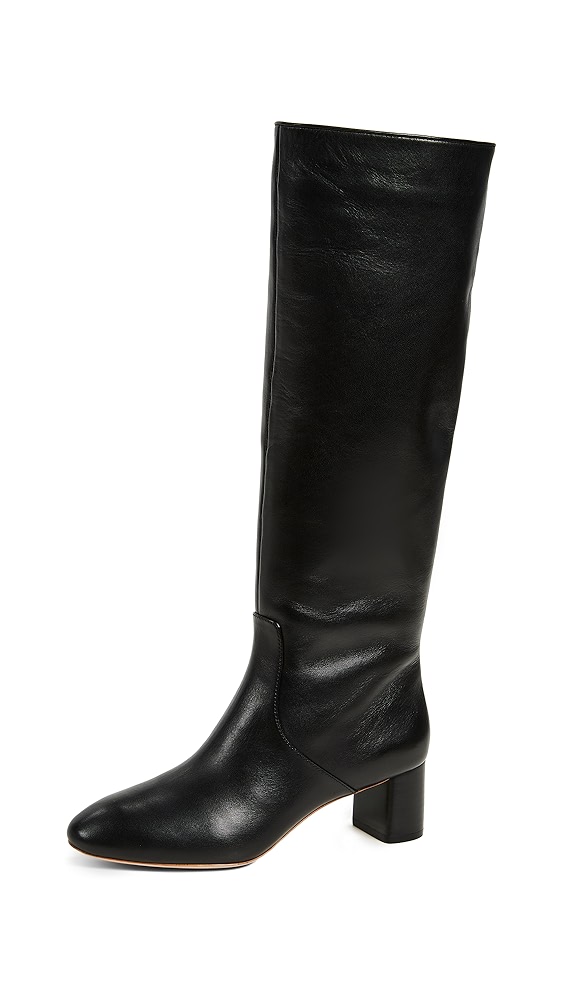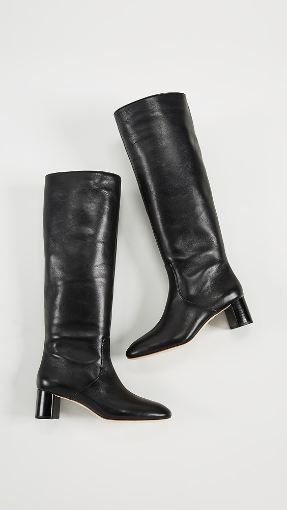 Leather: Cowhide Lightly cushioned leather footbed Stacked heel No closure, pull-on design Round toe Leather sole with rubber heel cap Leather lining Imported, China This item cannot be gift-boxed Style #LOEFF41678 A clean classic with a lot of polish and versatility, these Loeffler Randall boots are a knee-high style that…