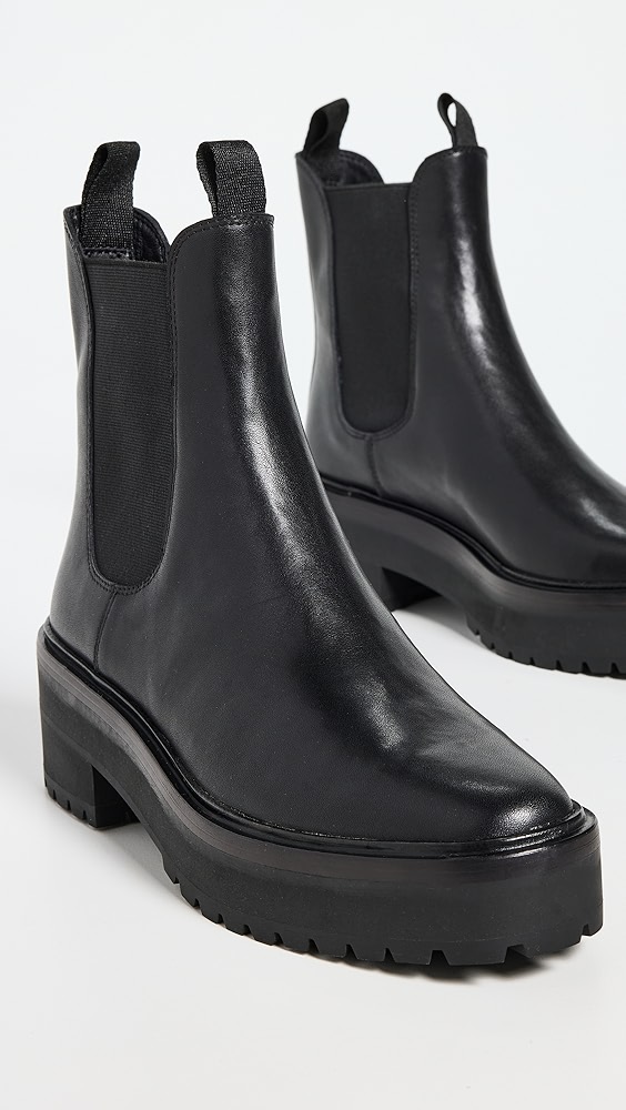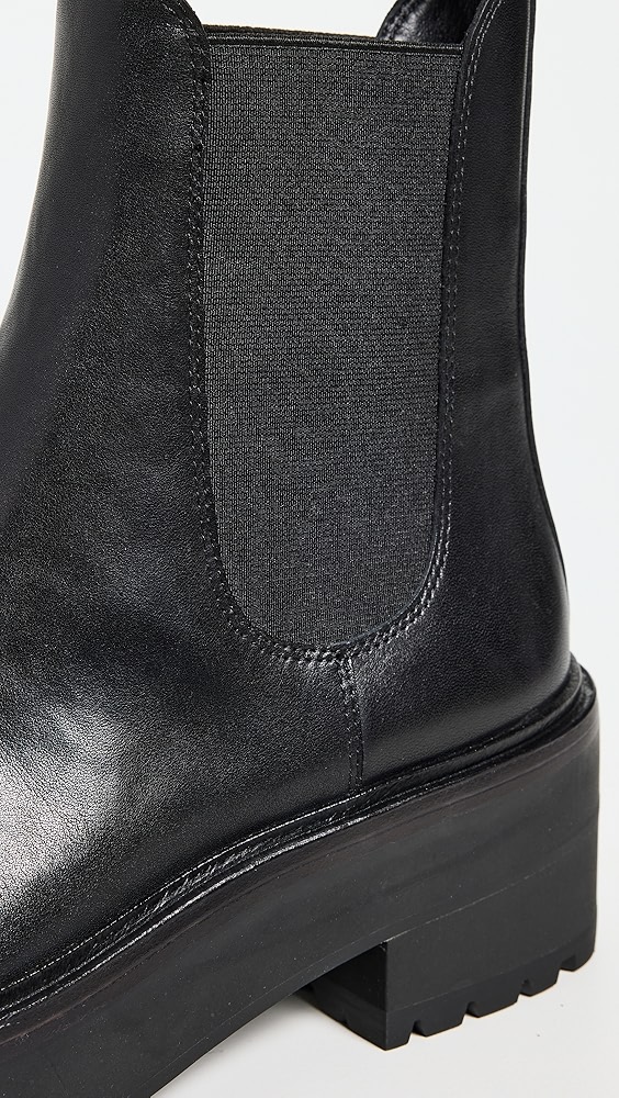 Leather: Smooth cowhide Chunky heel Rounded toe Leather sole with rubber patch Imported, China This item cannot be gift-boxed Pull-on style Style #LOEFF41549 A clean classic with a lot of polish and versatility, these Loeffler Randall boots are a knee-high style that belongs in every closet.