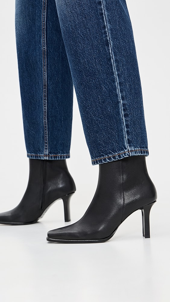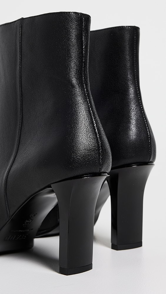 Upper: Cowhide Stretch suede Lining: Leather Chunky heel Zip closure Pointed toe Leather sole with rubber patch Imported, China This item cannot be gift-boxed Style #LOEFF40795 Making it easy to nail those dress-up, dress-down looks, these Loeffler Randall booties balance formfitting, stretch suede with a chunky heel for a boot…