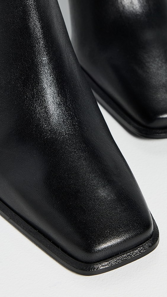 Leather: Smooth cowhide Chunky heel Rounded toe Leather sole with rubber patch Imported, China This item cannot be gift-boxed Pull-on style Style #LOEFF41549 A clean classic with a lot of polish and versatility, these Loeffler Randall boots are a knee-high style that belongs in every closet.