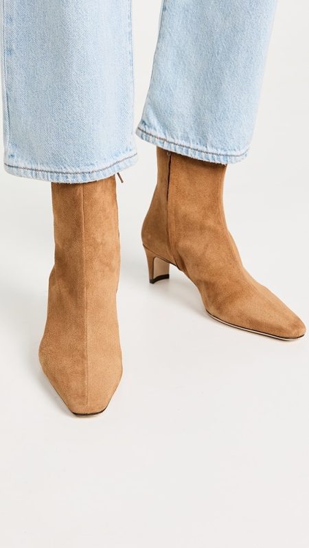 Upper: Cowhide suede Lining: Leather Slim block heel No closure, pull-on design Pointed toe Leather sole Made in Portugal This item cannot be gift-boxed Style #STAUD32130